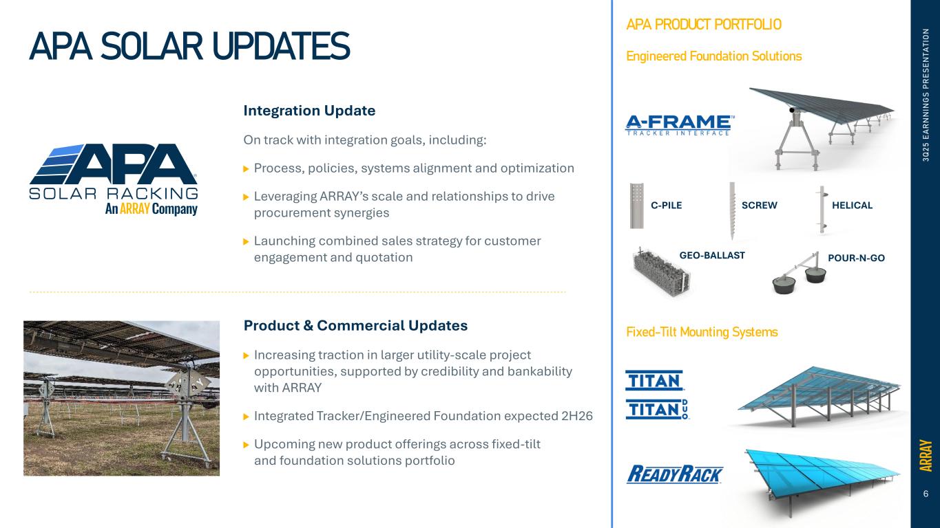 Mr. Hostetler continued, “With APA now part of the ARRAY suite of offerings, we are updating our full-year guidance to reflect approximately one-and-a-half quarters of contribution from APA, and the continued strength of our existing business. We expect the inclusion of APA will fuel top-line expansion and strong profitability. We remain highly confident in our ability to execute through the remainder of 2025, supported by our strong operational performance and strategic initiatives. Looking ahead to 2026, we anticipate continued growth as we build upon our momentum, launch our new integrated tracker, foundation, and software solutions, and further strengthen our position in the industry.”