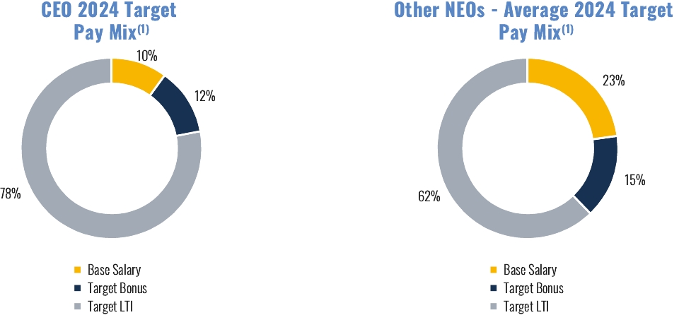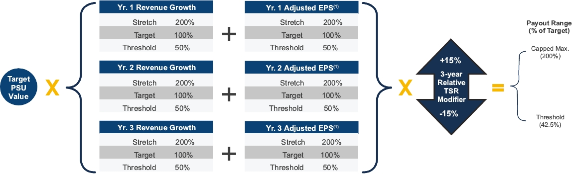 Pursuant to the PSU award agreements granted under the LTIP, if, prior to the end of the performance period, the NEO’s employment is terminated due to death or disability, the PSUs will vest as of the date of such termination at target performance, pro-rated to reflect the portion of the performance period during which the executive was employed by us. If, after the end of the performance period but before the applicable vesting date, the NEO’s employment is terminated due to death or disability, the PSUs will vest based on actual performance. Upon the occurrence of a change in control, any outstanding PSUs will be earned based on actual performance through the date of the change in control, with the earned PSUs continuing to vest based on the executive’s continued service. Upon the executive’s qualifying termination that occurs upon or within 24 months following a change in control, or the executive’s termination by reason of death or disability following a change in control, all earned PSUs will immediately become fully vested upon the date of termination.